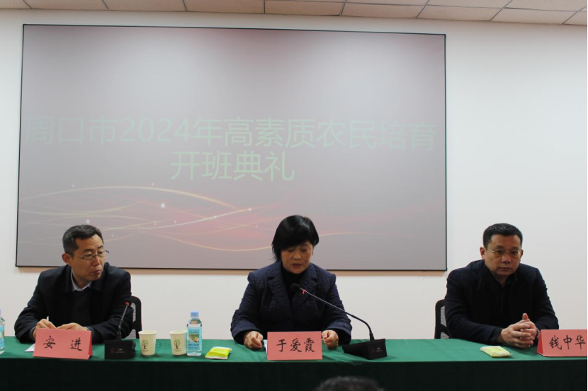 儀式上,于愛霞致歡迎詞,介紹本期培訓(xùn)班的授課教師、培訓(xùn)課程及培訓(xùn)周期,并強(qiáng)調(diào)培訓(xùn)紀(jì)律。安進(jìn)在開班講話中傳達(dá)了上級(jí)文件精神,并結(jié)合周口市農(nóng)業(yè)發(fā)展情況、發(fā)展需求,強(qiáng)調(diào)落實(shí)培訓(xùn)任務(wù),要求培訓(xùn)一批“有文化、懂技術(shù)、善經(jīng)營、會(huì)管理”的高素質(zhì)農(nóng)民。