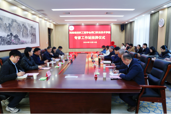 12月15 日下午,河南省紡織工程學(xué)會周口職業(yè)技術(shù)學(xué)院專家工作站揭牌儀式在我校開元校區(qū)第六會議室成功舉行。河南省紡織工程學(xué)會黨委副書記、常務(wù)副理事長楊潤凱,周口職業(yè)技術(shù)學(xué)院黨委副書記李明臣、副校長于愛霞出席。教務(wù)處處長李嘉主持。