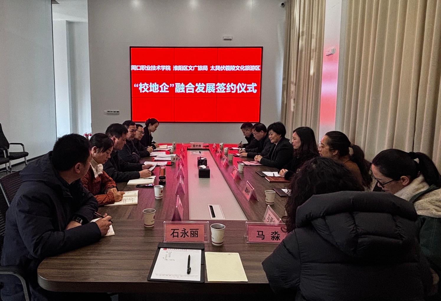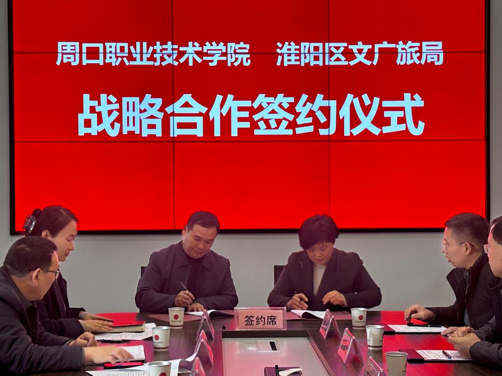 為進(jìn)一步深化校地企合作,共譜融合共贏新篇章,12月18日上午,周口職業(yè)技術(shù)學(xué)院、淮陽區(qū)文廣旅局和太昊伏羲始祖旅游區(qū)運(yùn)營(yíng)管理有限公司舉行校地企三方合作簽約儀式。淮陽區(qū)文廣旅局局長(zhǎng)劉琨、區(qū)景區(qū)運(yùn)營(yíng)公司董事長(zhǎng)張森,周口職業(yè)技術(shù)學(xué)院副校長(zhǎng)于愛霞等出席。