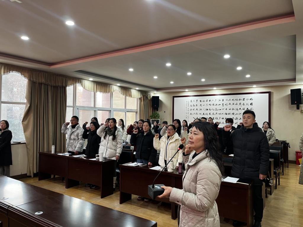開(kāi)班儀式上,唐文杰宣讀培訓(xùn)方案并強(qiáng)調(diào)此次培訓(xùn)的目的及紀(jì)律要求,并帶領(lǐng)新聘教師進(jìn)行入職宣誓,以錚錚誓言表達(dá)為黨育人、為國(guó)育才的初心使命;新聘教師趙坤宇作代表發(fā)言。