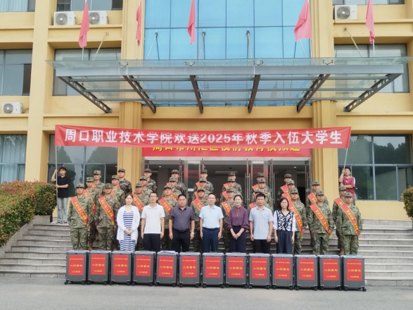 9月15日,在新兵即將奔赴軍營之際,副校長王隼帶領(lǐng)學(xué)校武裝部、學(xué)生處負責(zé)人及相關(guān)工作人員前往周口市軍分區(qū)民兵訓(xùn)練基地,為我校2025年秋季入伍的大學(xué)生新兵送去母校的關(guān)懷與祝福,并舉行歡送儀式。