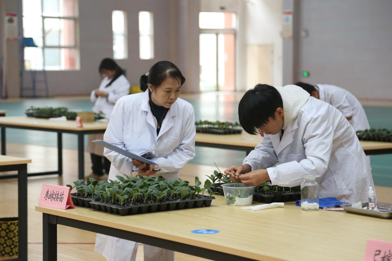 理論測試環(huán)節(jié),重點考查植物栽培與養(yǎng)護、種苗繁育和病蟲害防治等相關知識;嫁接操作環(huán)節(jié),選手們需在規(guī)定時間和條件內,完成植物嫁接操作,展現(xiàn)其動手能力和專業(yè)素養(yǎng)。