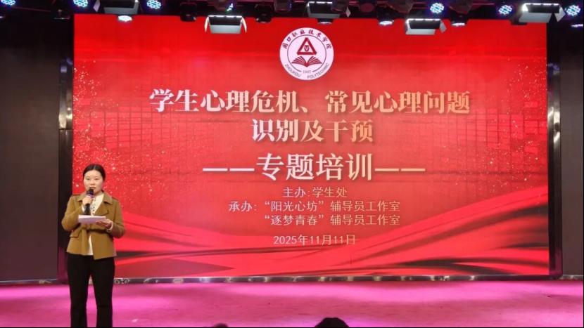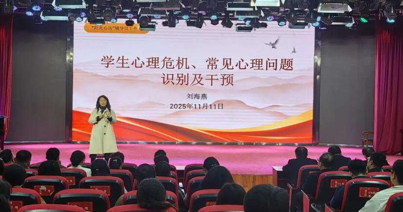 為進(jìn)一步提升輔導(dǎo)員隊(duì)伍心理健康教育專業(yè)素養(yǎng),強(qiáng)化學(xué)生心理危機(jī)預(yù)警與干預(yù)能力,筑牢校園心理健康安全防線,11月11日下午,我校在開元校區(qū)藝術(shù)演播廳舉辦“學(xué)生心理危機(jī)、常見(jiàn)心理問(wèn)題識(shí)別及干預(yù)”專題培訓(xùn)。活動(dòng)特邀心理健康教育專家劉海燕主講,副校長(zhǎng)李秀萍出席。各二級(jí)學(xué)院(部)黨總支書記、學(xué)管副院長(zhǎng)、學(xué)管辦主任,全體在校生輔導(dǎo)員及學(xué)生處、心理指導(dǎo)中心相關(guān)工作人員參加。學(xué)生處副處長(zhǎng)王換換主持。