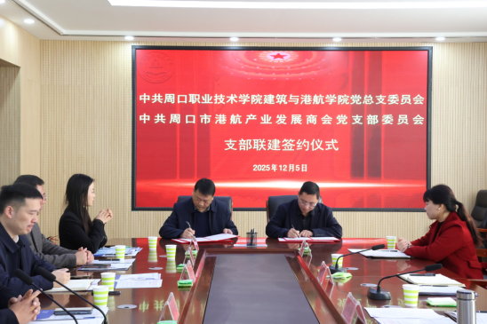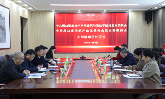 12月5日上午,周口職業(yè)技術(shù)學(xué)院建筑與港航學(xué)院黨總支與周口市港航產(chǎn)業(yè)發(fā)展商會黨支部在我校第六會議室舉行支部聯(lián)建簽約儀式。此次聯(lián)建是雙方深入貫徹落實市委“16232”總體工作思路的一項實質(zhì)性舉措,也是校地攜手服務(wù)周口港航產(chǎn)業(yè)高質(zhì)量發(fā)展的生動實踐。