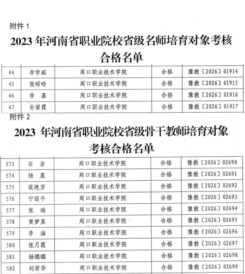 近日,河南省教育廳河南省人力資源和社會保障廳發(fā)布《關(guān)于公布2023年河南省職業(yè)院校省級名師和省級骨干教師培育期滿考核結(jié)果的通知》(教職成〔2026〕20號),我校14名教師全部順利通過考核。其中,李嘉等4名教師榮獲“河南省職業(yè)院校省級名師”稱號,石巖等10名教師榮獲“河南省職業(yè)院校省級骨干教師”稱號。