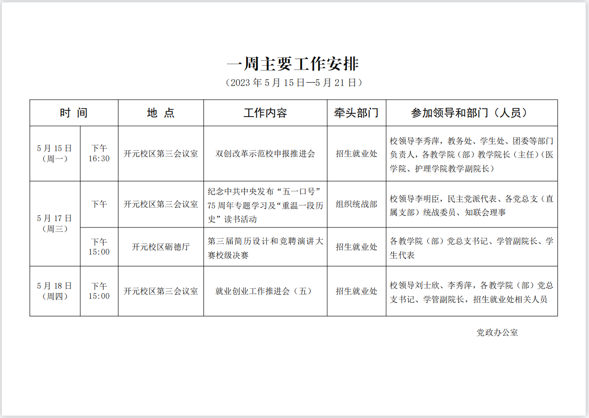 一周主要工作安排(2023年5月15日-5月21日)