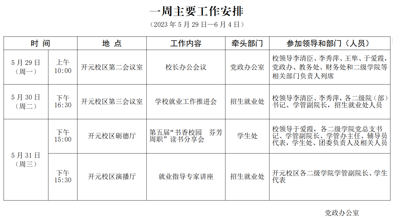 一周主要工作安排(2023年5月29日—6月4日)