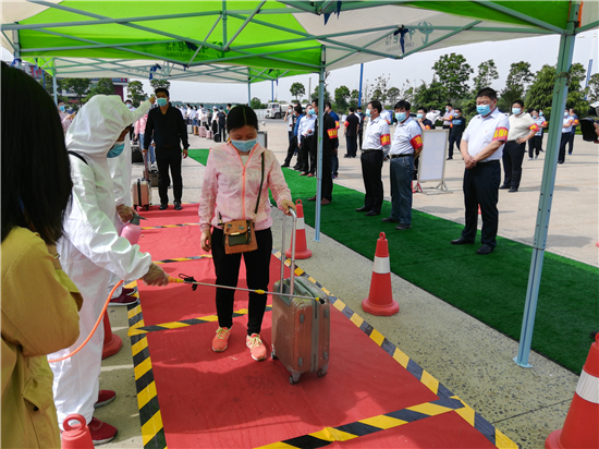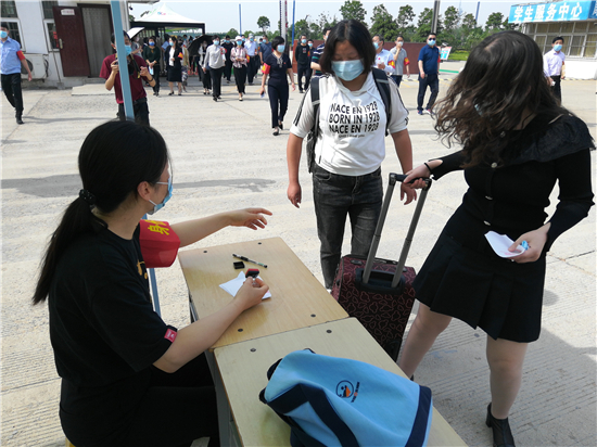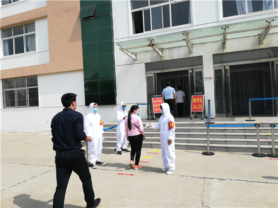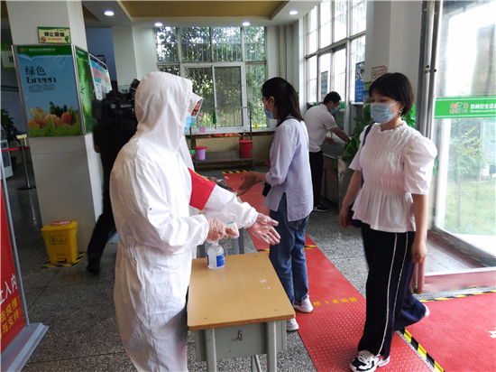 “請大家保持1米距離,有序入校。”在工作人員指引下,周口職業(yè)技術(shù)學(xué)院50多名教師扮演的返校“學(xué)生”戴著口罩,提著行李間隔排隊(duì)、井然有序地從學(xué)校大門進(jìn)入校園,并依次進(jìn)行體溫測量、行李消殺、信息核實(shí)、發(fā)放通行標(biāo)識等流程,隨后按導(dǎo)引圖到校園指定接待點(diǎn)報(bào)到。
