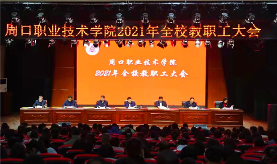 2021年周口職業(yè)技術(shù)學院工作怎么做?3月3日上午,周口職業(yè)技術(shù)學院召開2021年全校教職工大會,總結(jié)2020展望2021,目標是奮力譜寫學校的高質(zhì)量發(fā)展的新篇章,以新氣象新作為向建黨100周年獻禮。