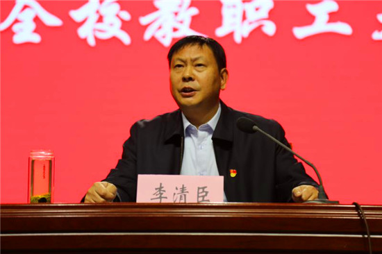 李清臣強調(diào),一要認清形勢,把握機遇,乘勢而上;二要加強黨建政治引領(lǐng),保障學校高質(zhì)量發(fā)展;三要以國家級、省級“雙高校”建設(shè)項目為基點,努力抓好教學、科研和就業(yè)創(chuàng)業(yè)工作;四要落實立德樹人根本任務(wù),提高學管工作水平,全面提升服務(wù)學生能力;五要提升招生就業(yè)質(zhì)量,厚植學校發(fā)展基礎(chǔ);六要強化學校內(nèi)部治理,提升治校能力水平。