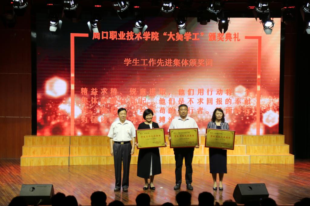 為表彰先進、樹立榜樣,演出間隙,校領(lǐng)導(dǎo)為國家獎學(xué)金、國家勵志獎學(xué)金、三好學(xué)生、優(yōu)秀學(xué)生干部、優(yōu)秀班集體、最美大學(xué)生、優(yōu)秀輔導(dǎo)員、學(xué)生工作先進集體代表頒獎。