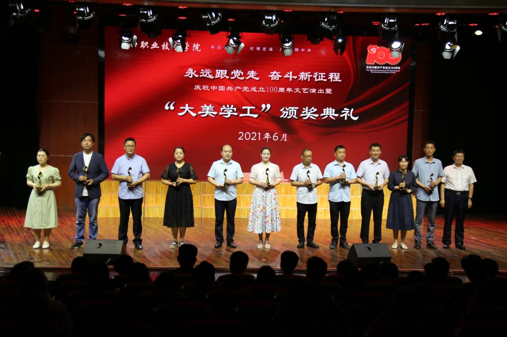 百年光輝歷程, 百年豐功偉績;百年青春向黨,百年風(fēng)華正茂。6月15日下午15點至16點40分,歷時100分鐘,周口職業(yè)技術(shù)學(xué)院在開元校區(qū)礪德廳隆重舉行永遠跟黨走、奮斗新征程,慶祝中國共產(chǎn)黨成立100周年文藝演出暨“大美學(xué)工”頒獎典禮。