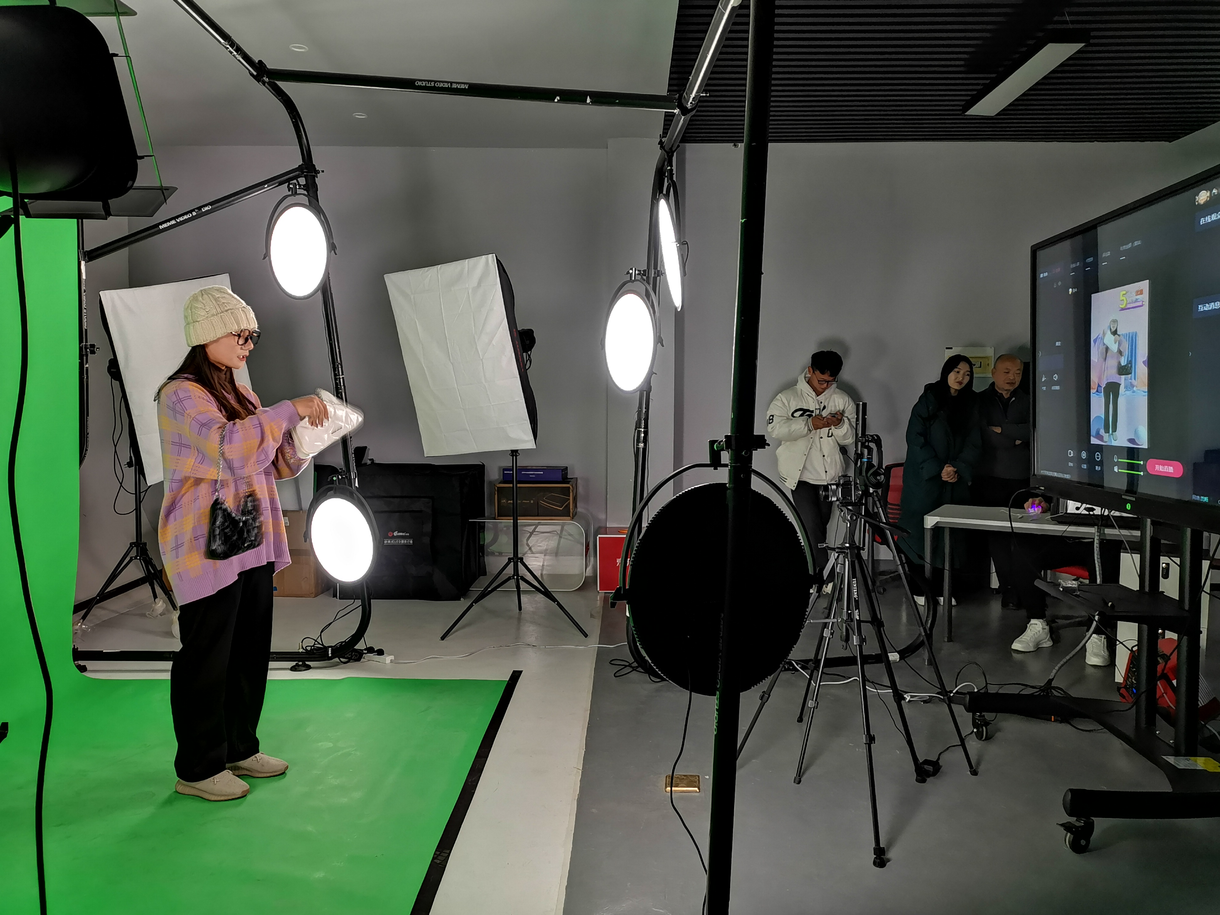 12月3日,大河報(bào)?豫視頻記者在周口職業(yè)技術(shù)學(xué)院經(jīng)濟(jì)管理學(xué)院網(wǎng)絡(luò)營銷與直播人才培養(yǎng)基地看到,一間間實(shí)訓(xùn)教室里,同學(xué)們正在專業(yè)老師的帶領(lǐng)下,開展理論學(xué)習(xí)和操作實(shí)踐。尤其在虛擬直播實(shí)訓(xùn)室內(nèi),同學(xué)們在綠幕前推銷各類產(chǎn)品,任由場景切換,發(fā)揮輕松自如。