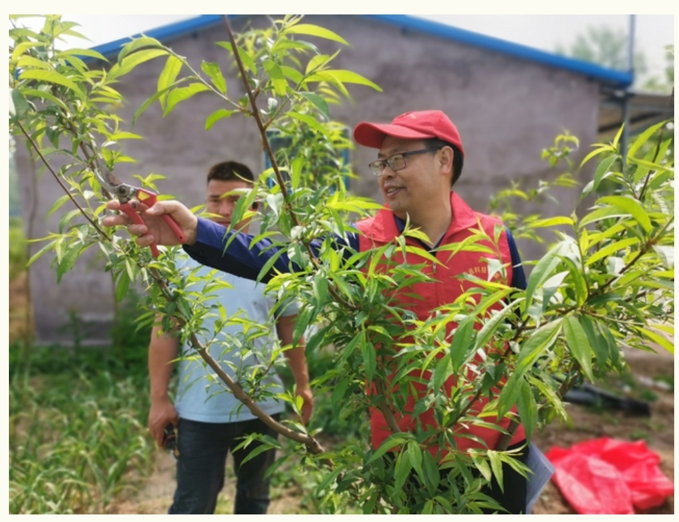一到李堂行政村,王尚堃就與村支書李秀才就本次科技服務行程進行交流溝通,之后來到果農李宗呂的蟠桃園進行現(xiàn)場指導。針對李宗呂遇到的蟠桃蚜蟲不好防治的問題,王尚堃給出防治蚜蟲的三個用藥方案,指出防治關鍵節(jié)點及用藥種類。王尚堃又通過現(xiàn)場察看,指出近階段蟠桃管理的主要工作,并為其傳授管理技術要點。