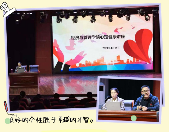 為強(qiáng)化我校心理健康工作,增強(qiáng)學(xué)生情緒管理能力,提高學(xué)生心理健康水平,4月14日下午,心理健康教育中心張?zhí)锩侠蠋熓苎麨榻?jīng)濟(jì)與管理學(xué)院的師生作了題為“我的情緒我來控”的心理健康講座。來自經(jīng)管學(xué)院700余名師生在礪德廳現(xiàn)場(chǎng)聆聽了講座,講座由經(jīng)管學(xué)院學(xué)管辦主任李勇主持。