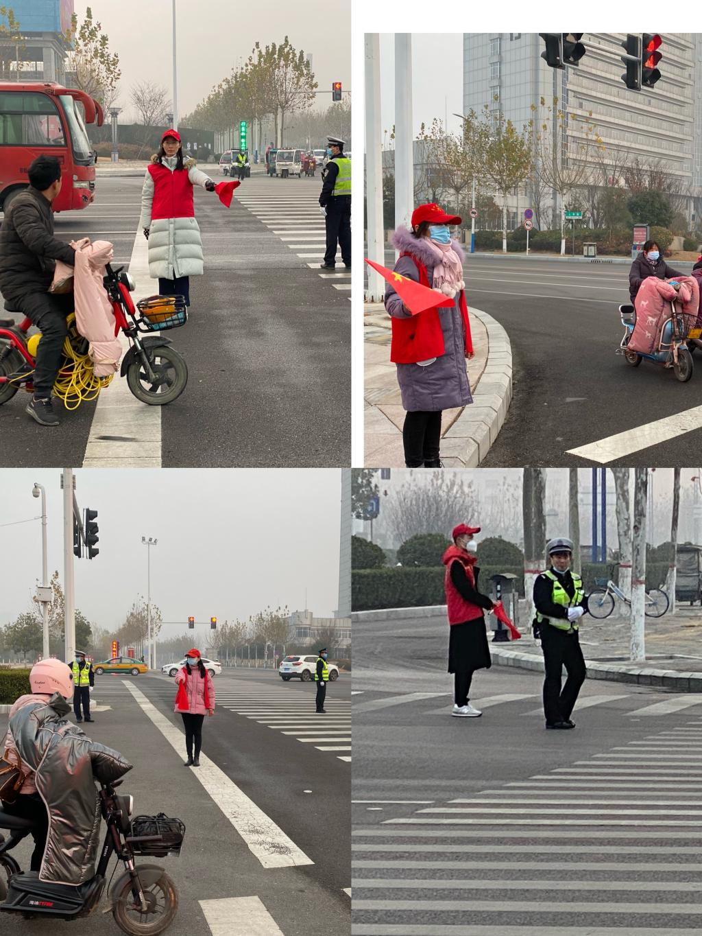 瑟瑟寒風(fēng)中,護(hù)理學(xué)院教師志愿者提前安排好自己的教學(xué)工作,提前來(lái)到集合地點(diǎn),穿戴好統(tǒng)一服裝,在上下班高峰的路段,手執(zhí)“文明出行 ”指揮旗,配合交警引導(dǎo)市民自覺(jué)遵守交通規(guī)則,文明出行。為防寒冷,院領(lǐng)導(dǎo)給大家購(gòu)有暖帖,備有壺裝熱水,保暖的大衣,提醒大家戴上口罩和手套,做好個(gè)人保暖。