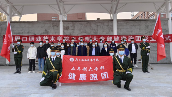 致辭后,五年制大專部健康跑團(tuán)正式成立。全體成員列隊(duì)整齊,精神飽滿,在團(tuán)旗的引領(lǐng)下,邁著矯健的步伐,跑步開啟新征程。