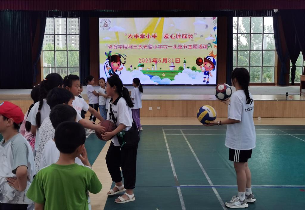 學(xué)校體育學(xué)院體育教育專業(yè)師生帶領(lǐng)三大夫營(yíng)同學(xué)們開展健身操、排球、跳繩等體育游戲和競(jìng)技活動(dòng),并手把手輔導(dǎo)同學(xué)們使用健身器材。通過此次活動(dòng),既使孩子們感受到體育運(yùn)動(dòng)的魅力,激發(fā)了自身潛能,又培養(yǎng)了勇敢、樂觀、團(tuán)結(jié)協(xié)作的良好品質(zhì)。孩子們?cè)隗w育活動(dòng)中體驗(yàn)合作與交流的快樂,度過了一個(gè)難忘的“六一”國(guó)際兒童節(jié)。