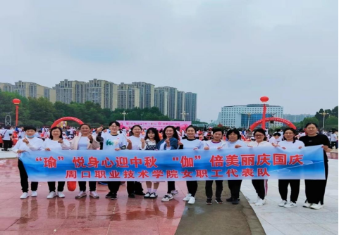為迎“雙節(jié)”,9月26日上午,我校工會(huì)組織女教職工代表隊(duì)參加周口市直工會(huì)舉辦的“‘瑜’悅身心迎中秋 ‘伽’倍美麗慶國(guó)慶”周口市千名女職工瑜伽風(fēng)采展演活動(dòng)。
