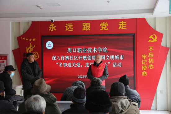 入冬以來,我市氣溫大幅下降,為進一步深化“入戶大走訪”活動,充分發(fā)揮我校作為省級文明校園標(biāo)兵的示范作用,確保群眾安全過冬、溫暖過冬,12月27日上午,學(xué)校黨委宣傳部部長萬四新帶領(lǐng)黨員志愿者深入許寨社區(qū)開展了“冬季送關(guān)愛,走訪暖人心”活動。