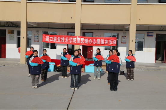 惠民暖心志愿服務(wù)環(huán)節(jié),周口職業(yè)技術(shù)學(xué)院師生志愿者為三大夫營小學(xué)的同學(xué)們帶來了精心準(zhǔn)備的體育器材和美術(shù)用品,同學(xué)們?yōu)榇蠹易骶实纳茸游韬吞珮O拳展示。
