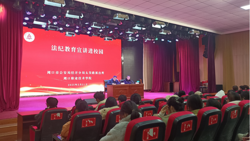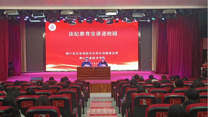 為深入推進習近平總書記對河南重要指示批示精神貫徹落實,進一步提高大學生法律意識和紀律觀念,營造文明、平安、和諧的校園環(huán)境,2月21日下午,學校保衛(wèi)處、學生處聯合周口市公安局經開分局太昊路派出所在我校藝術演播廳開展法紀教育宣講進校園活動,180余名學生干部參加活動。