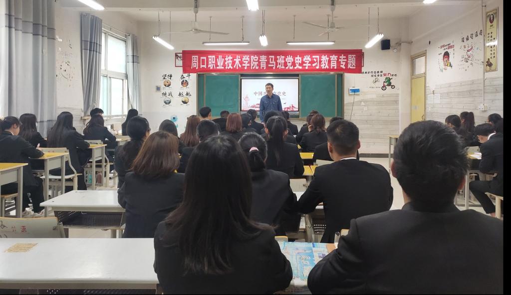 2021年4月13日下午,周口職業(yè)技術(shù)學(xué)院青馬班開展黨史學(xué)習(xí)教育專題學(xué)習(xí)。文化教育學(xué)院團(tuán)總支書記、青馬班班主任普俊圍繞“百年黨史”展開主題分享。