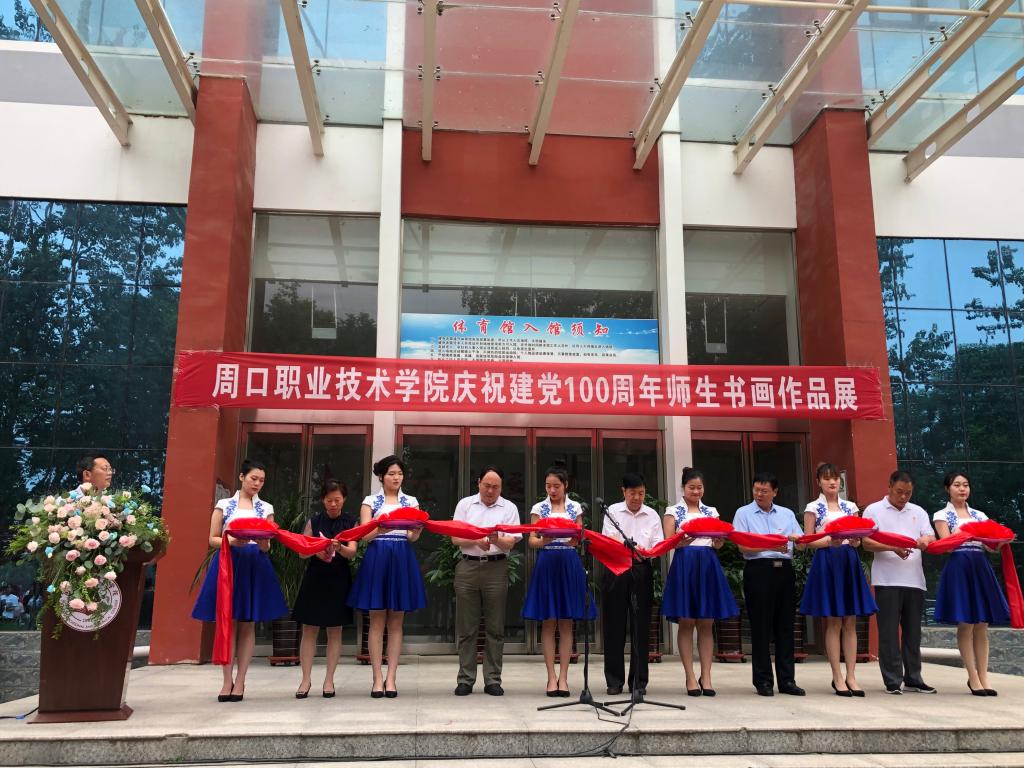 副校長(zhǎng)李明臣主持開(kāi)幕式,副校長(zhǎng)李秀萍發(fā)表致辭,校長(zhǎng)李清臣等校領(lǐng)導(dǎo)為畫(huà)展剪彩,黨委書(shū)記劉士欣宣布:周口職業(yè)技術(shù)學(xué)院慶祝建黨100周年師生書(shū)畫(huà)作品展開(kāi)幕!開(kāi)幕式結(jié)束,各位領(lǐng)導(dǎo)、老師和同學(xué)們進(jìn)入體育館展廳,參觀書(shū)畫(huà)作品。