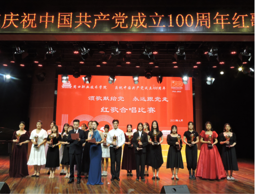 為慶祝中國共產(chǎn)黨建黨100周年,重溫黨的光輝歷程,深入推進(jìn)黨史學(xué)習(xí)教育,6月15日晚7點(diǎn),周口職業(yè)技術(shù)學(xué)院學(xué)前與藝術(shù)教育學(xué)院在礪德廳舉辦周口職業(yè)技術(shù)學(xué)院“頌歌獻(xiàn)給黨 永遠(yuǎn)跟黨走”紅歌合唱比賽。副校長(zhǎng)李明臣、李秀萍出席本次大賽,蘇奎、高岐奎、劉建新、王國儉和高飛擔(dān)任此次比賽的評(píng)委,共17個(gè)代表隊(duì)參加了比賽,近千名學(xué)生現(xiàn)場(chǎng)觀看。