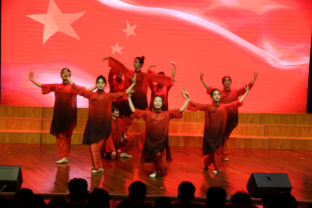 百年傳承,薪火相繼,每一次紅旗的升起,都給我們帶來(lái)心靈的震撼和青春的感悟,文藝演出在舞蹈《紅旗頌》中拉開(kāi)序幕。歌曲《燈火里的中國(guó)》歌唱祖國(guó)的繁榮富強(qiáng),歌唱小康社會(huì)里的幸福生活。感悟家國(guó)情懷,激揚(yáng)雄心壯志,送上了對(duì)祖國(guó)母親的美好祝福;紅色歌曲聯(lián)唱《劉胡蘭》《洪湖水浪打浪》《映山紅》《黨的兒女》讓現(xiàn)場(chǎng)觀眾在歌聲中尋找紅色年代的深刻回憶;由38名黨員輔導(dǎo)員組成的追夢(mèng)合唱團(tuán)演唱的《我宣誓》用激情澎湃,振奮昂揚(yáng)的歌聲唱響了新時(shí)代、黨旗下,廣大黨員干部“不忘初心、牢記使命”永遠(yuǎn)跟黨走的主旋律。詩(shī)朗誦《輔導(dǎo)員,我們愛(ài)你》,學(xué)生們?cè)谖枧_(tái)上回顧與老師們一同走過(guò)的青春時(shí)光,感念老師們對(duì)每位同學(xué)的辛勤付出,向老師們表達(dá)了誠(chéng)摯的敬意……曼妙的舞姿、昂揚(yáng)的歌聲贏得現(xiàn)場(chǎng)師生情感共鳴、掌聲不斷,演出在高飛、杜一萍老師《不忘初心》的歌聲中推向高潮。