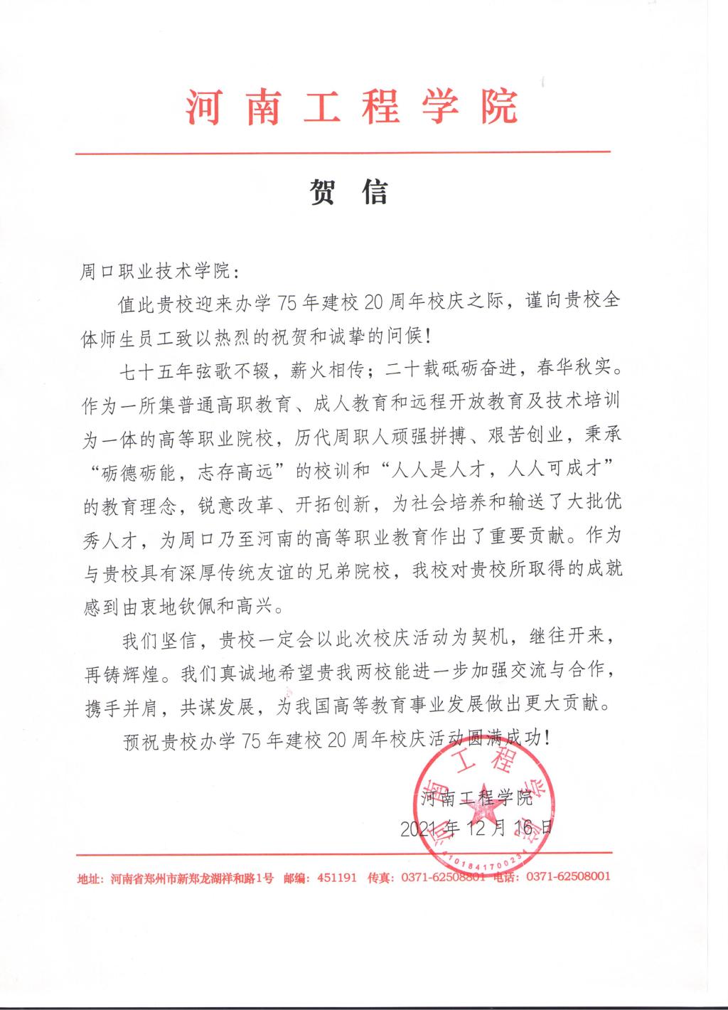 【獻(xiàn)禮校慶】河南工程學(xué)院賀信